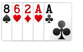 TWO PAIR : kombinasi kartu ini membutuhkan 2 pasang kartu dengan angka yang sama. Misal : 1 ♣ - 1♦ - 8 - 8♦ - 2 â™  atau 10 ♣ - 10♦ - K â™  - K♦ â€“ Q ♣