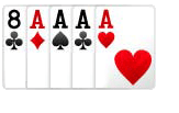 FOUR OF KIND : kartu terkuat ke 3 dalam permainan poker. Kombinasi kartu ini hanya membutuhkan 4 angka yang sama. Misal : As♦ - As♥ - As â™  - As ♣ - 10 ♣ atau 8 ♣ - 8♦ - 8♥ - 8 â™  - 1♦